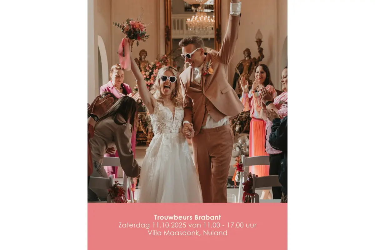 Naast praktische tips en adviezen is er volop ruimte om vragen te stellen aan leveranciers, inspiratie op te doen uit de nieuwste trends en ideeën direct te vertalen naar de eigen bruiloft. Alles wat je op de beurs ziet, hoort of proeft is te boeken voor jullie eigen bruiloft. Kom zaterdag 11 oktober 2025 naar Trouwbeurs Brabant en plan jullie droombruiloft in één dag!