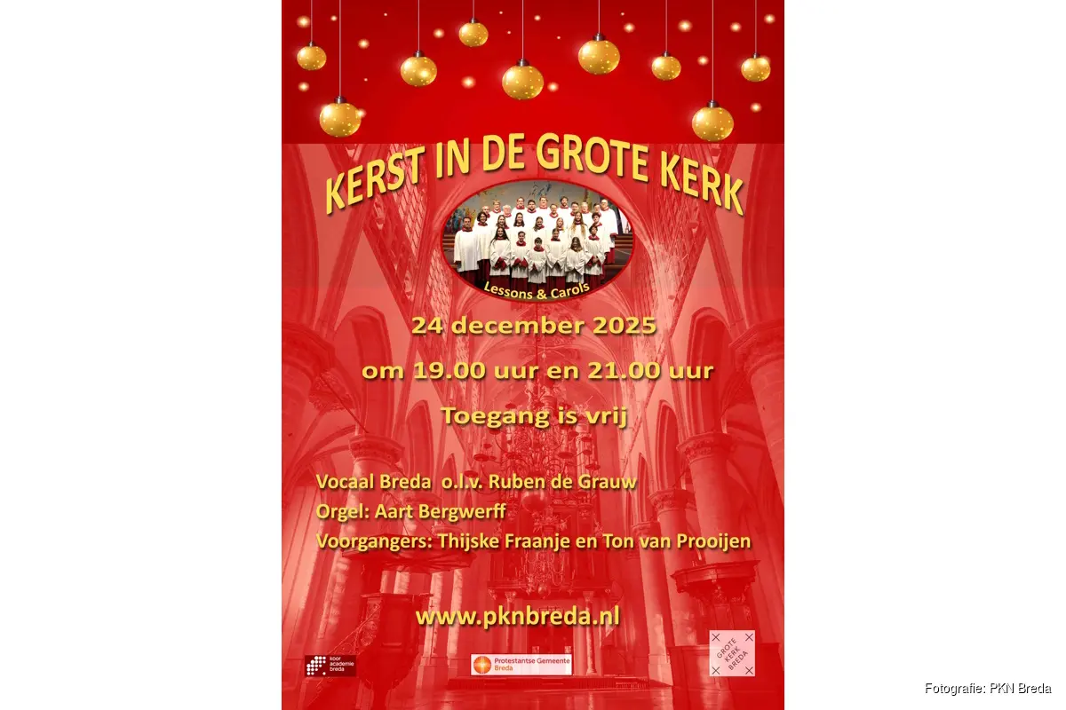BREDA - Op kerstavond vieren we in Breda samen Kerst in de Grote Kerk! We lezen het kerstverhaal en horen kerstmuziek: een Festival of Nine Lessons and Carols.